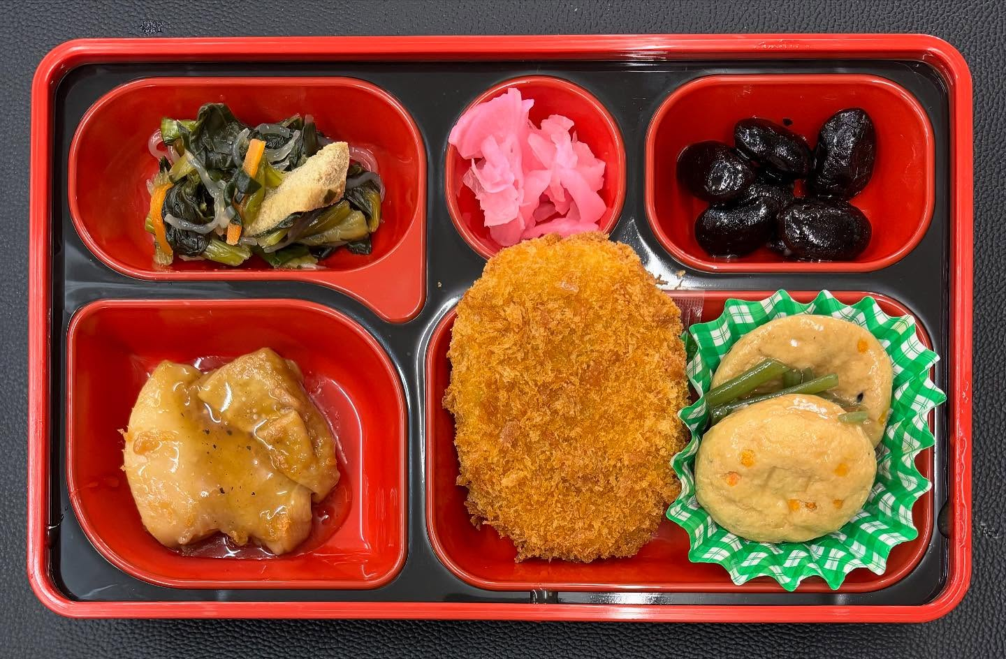 10月15日 今日の日替り弁当は10月15日 今日の日替り弁当は カレーコロッケ 鶏肉の山賊焼き がんもどきの山菜あんかけ 小松菜の煮浸し 黒花豆の甘煮 です!