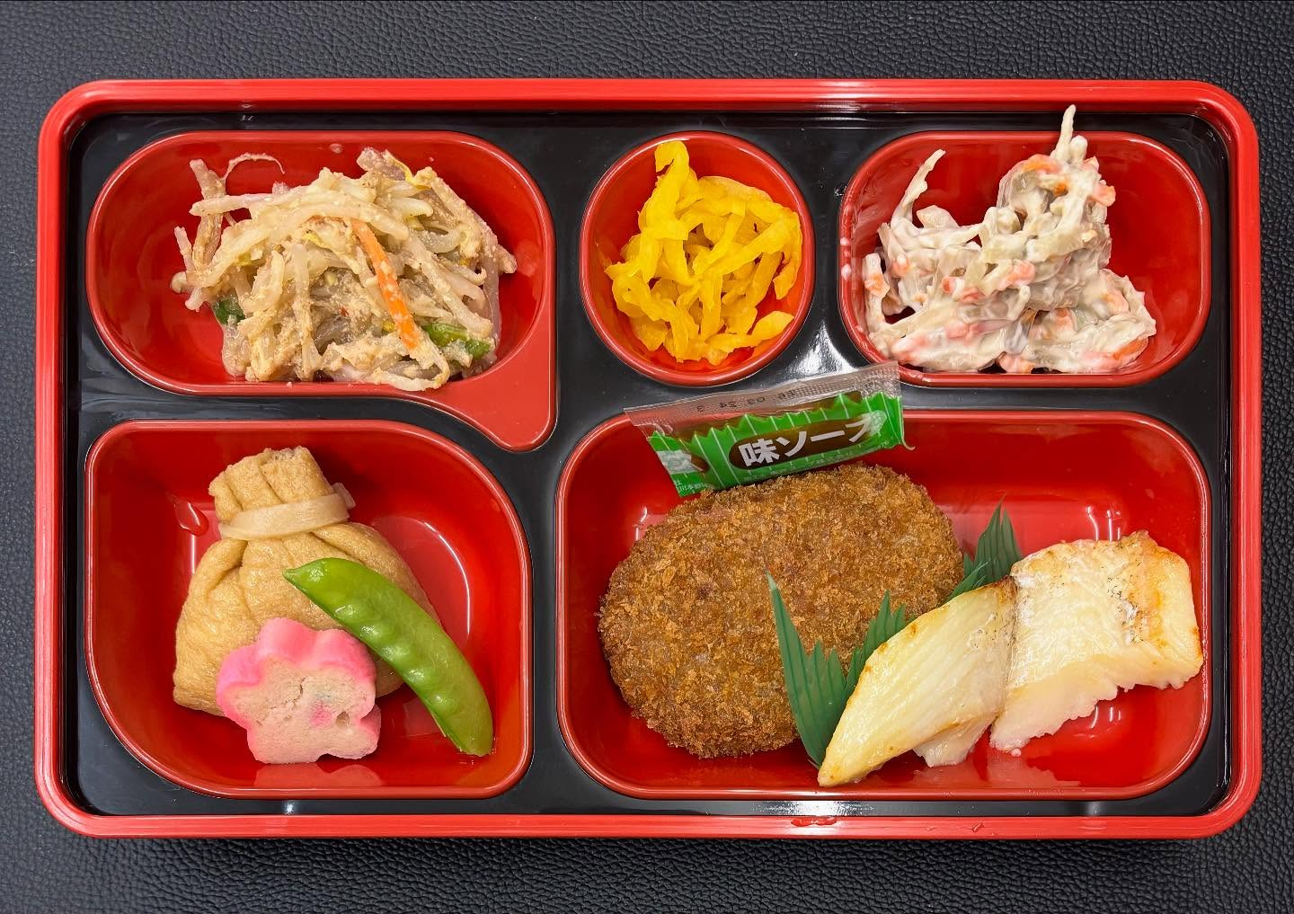 10月16日 今日の日替り弁当は10月16日 今日の日替り弁当は 牛すじコロッケ カレイの味噌漬け焼き 五目巾着含め煮 もやしのバンバンジー風 ゴボウサラダ です!