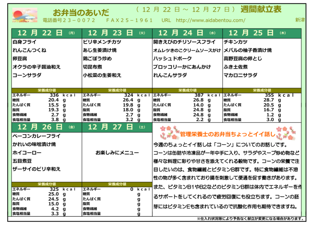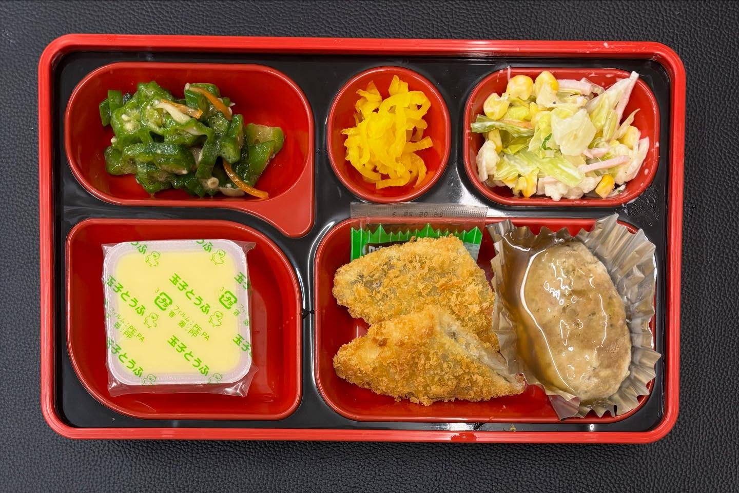 12月22日 今日の日替り弁当は12月22日 今日の日替り弁当は 白身フライ れんこんつくね 玉子豆腐 オクラの辛子和え コーンサラダ です! 配食サービス