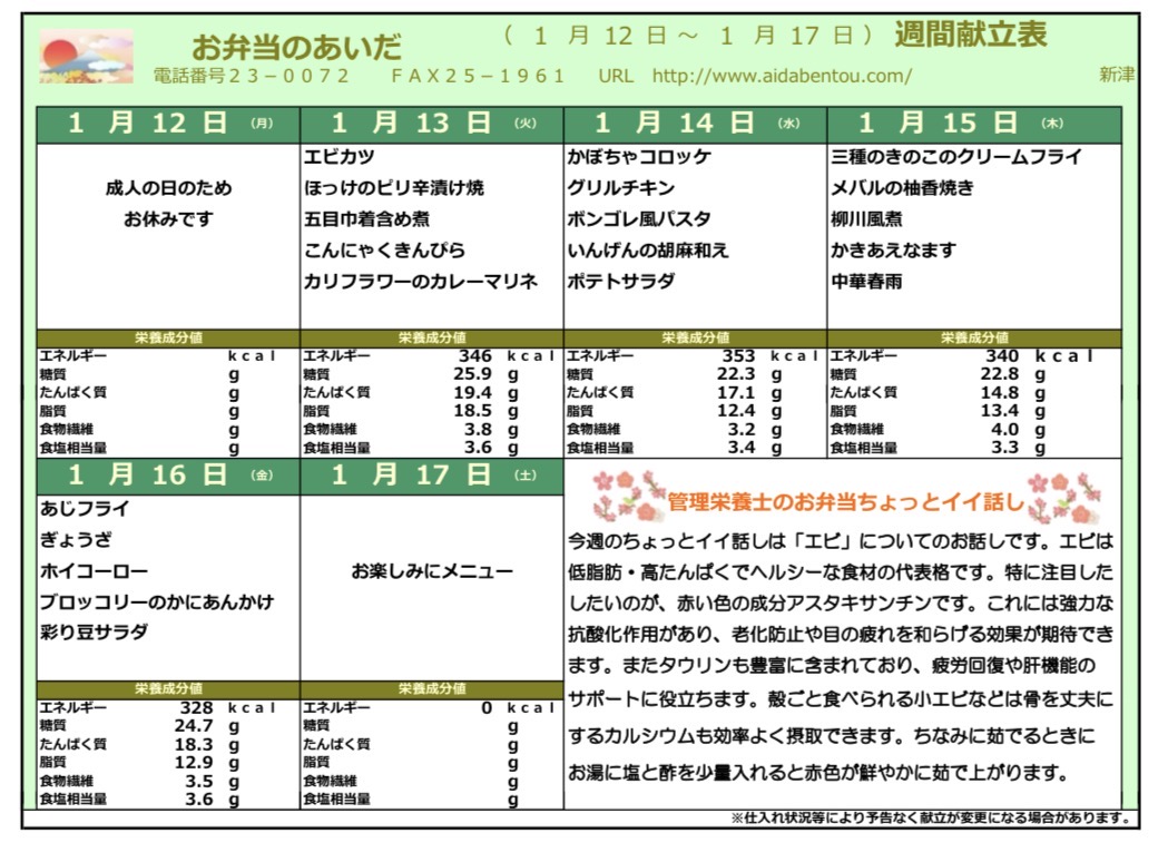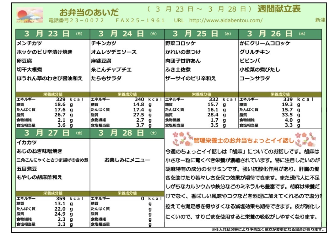 当社は新潟市秋葉区新関地区の能代川のほとりに所在し、真心とお愛情を込めた弁当の製造販売を行っております。