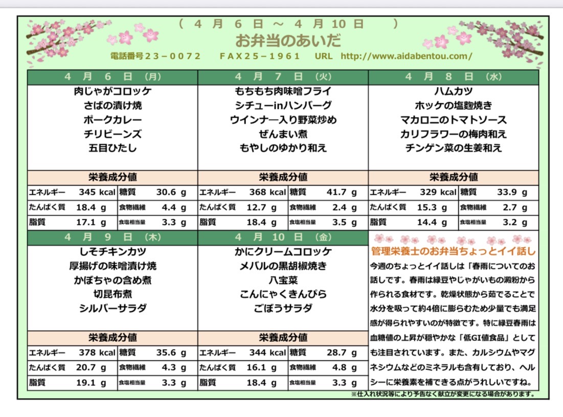 3月27日 今日の日替り弁当は3月27日 今日の日替り弁当は イカカツ アジのネギ味噌焼き 三角こんにゃくとさつま揚げの含め煮 五目煮豆 もやしの胡麻酢和え です! 配食サービス