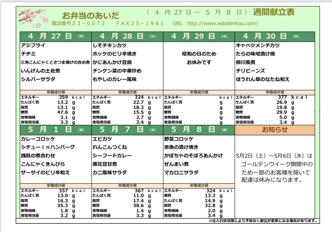 4月24日 今日の日替り弁当は4月24日 今日の日替り弁当は 磯辺白身フライ 千草焼き ビビンバ しそひじき煮 かぼちゃサラダ です! 配食サービス
