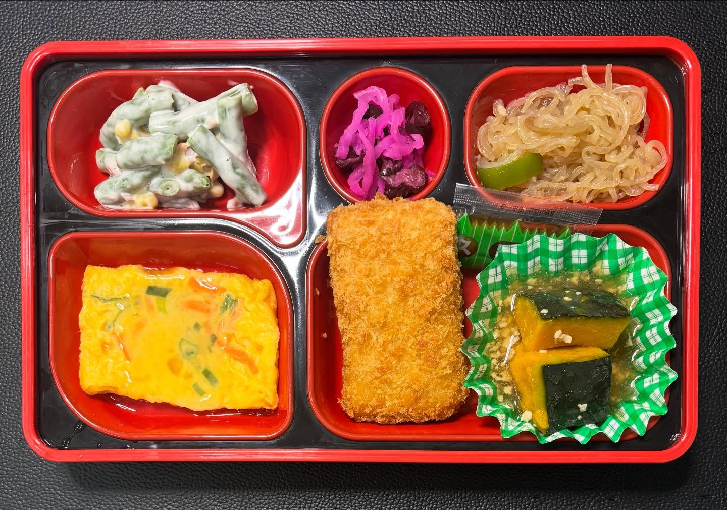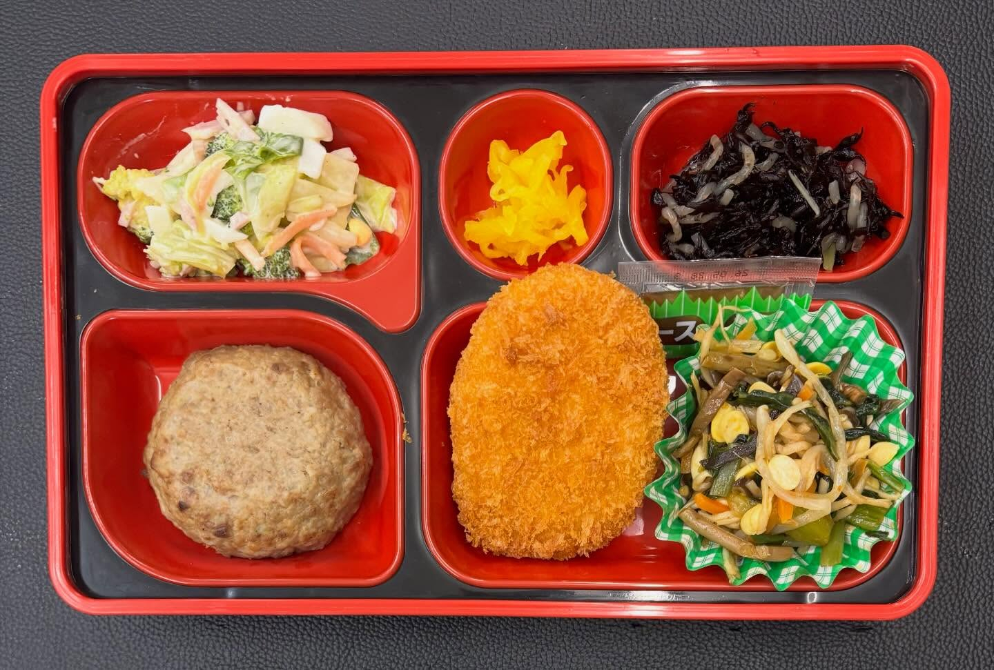 1月6日 今日の日替り弁当は1月6日 今日の日替り弁当は 野菜コロッケ チーズinハンバーグ ミックスビビンバ しそひじき煮 ミモザサラダ です! 配食サービス